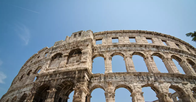 글레디에이터를 떠오르게 하는 거대한 원형 경기장 콜로세움,