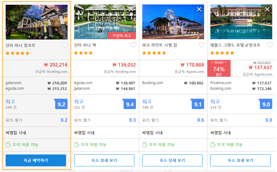 씨엠립 신타 마니 앙코르 호텔최저 가격대는