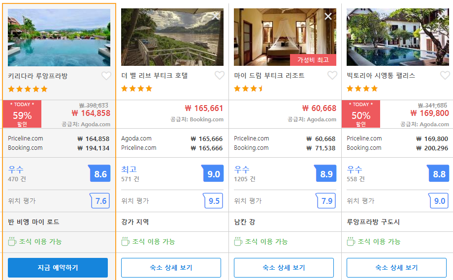 아고다에서 할인특가 가격으로 매일매일 변동되며