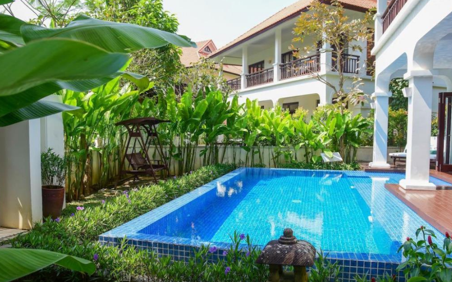 빌라의 개인 수영장과 전체 빌라의 수영장