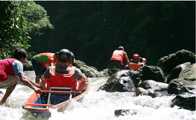 제공하며 로컬 방카 보트를 타고 스릴 넘치는 17km를 지나갑니다.
