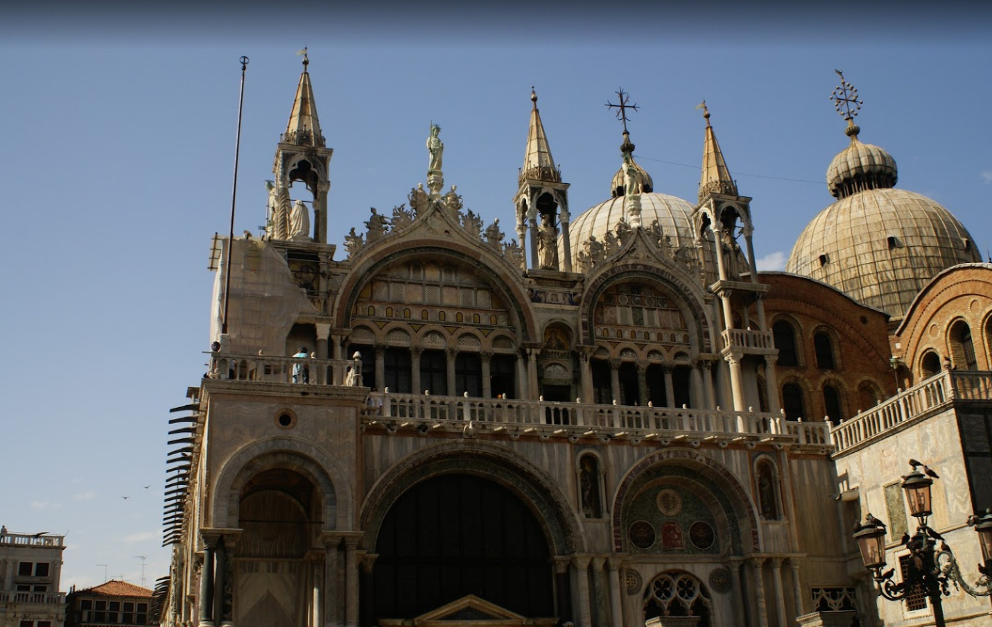 금으로 장식된 정교한 모장이크와 거대한 돔 형식의 산 무르코 성당은
