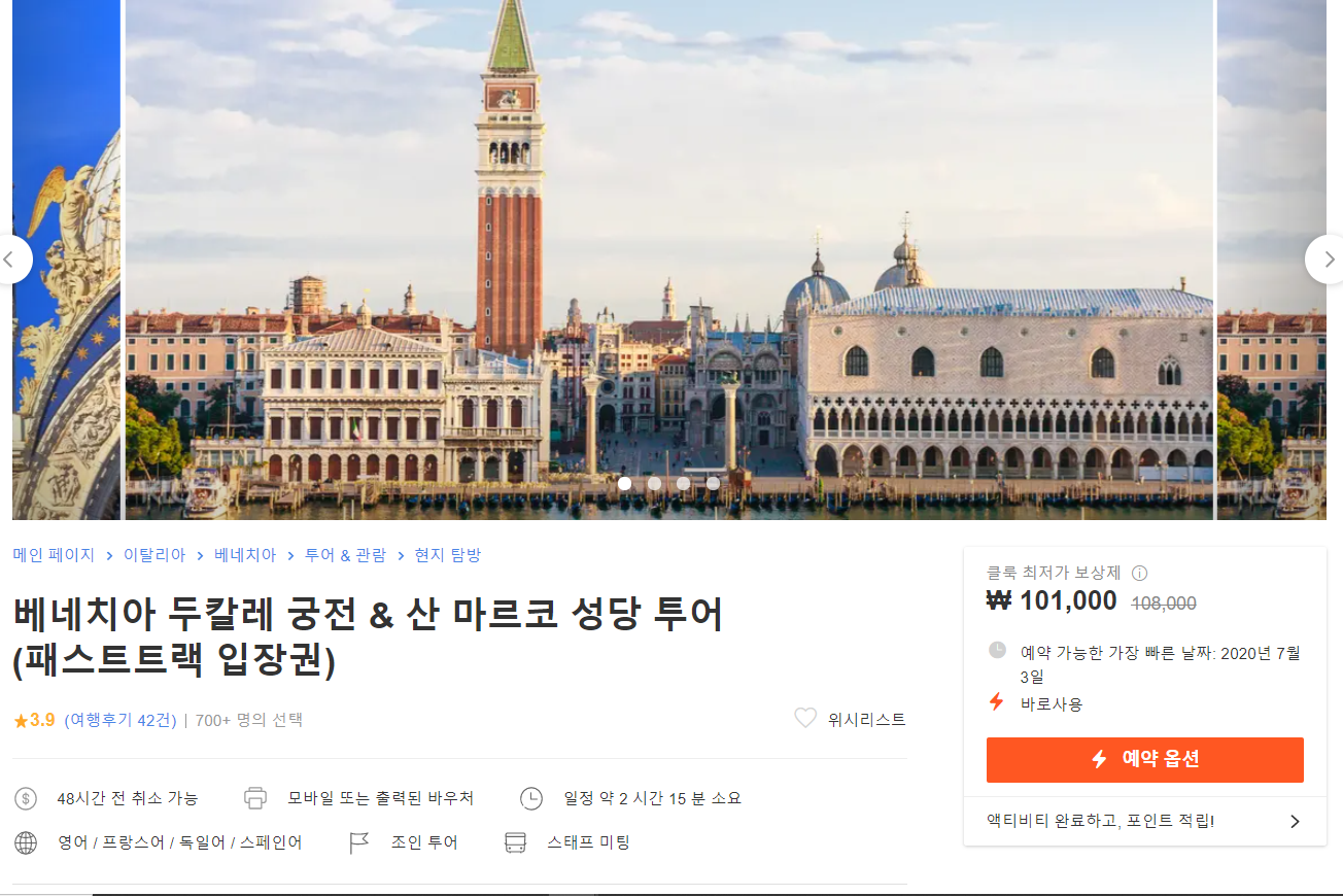 베네치아 산마르코성당& 두칼레 궁전 투어일정: