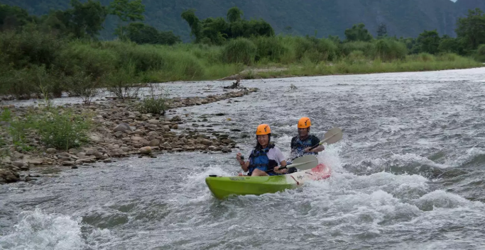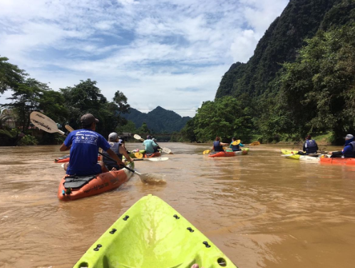 방비엥에서 비엔티안까지 쭉 뻗어 있는 남송강을 따라 카약킹을 체험하며,