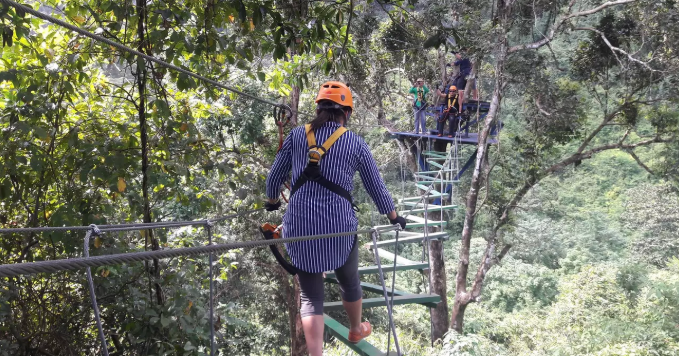 그리고 강, 울창한 숲이 내 발밑에 짚라인을 타고 절벽아래로 하강해 보세요 ~