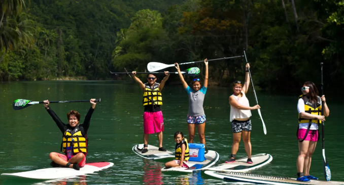 보홀에서 진행되는 스탠드업 패들체험은 고요한 로복강에서 진행하며
