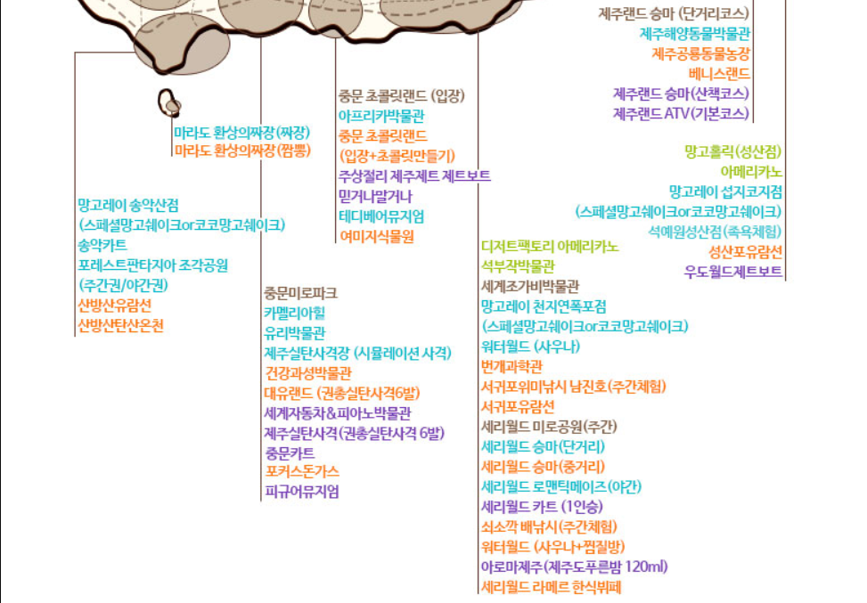 여미지 식물원, 수목원 테마파크, 제주민속촌 등 제주도의 유명 관광지들을