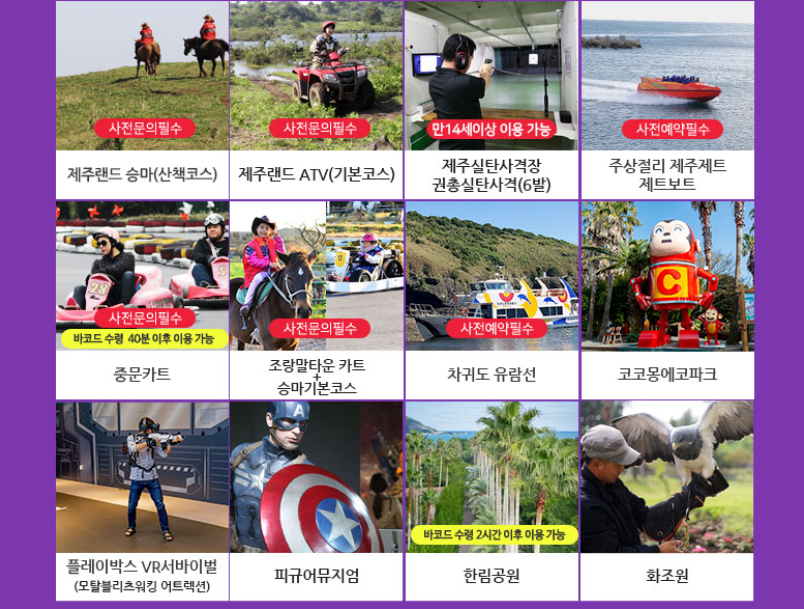 제주 관광지 자유이용권은 온라인으로 미리 예약하실 수 있으며 티켓을