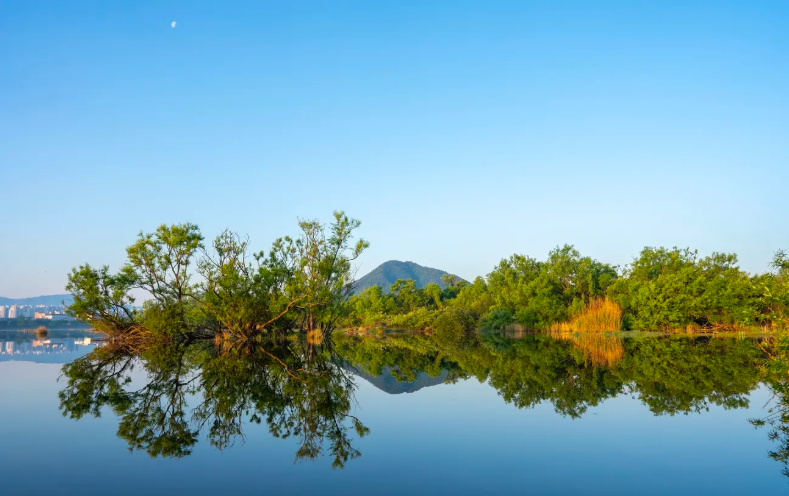 댐을 개방하지 않는 가장 평화로운 시간에 일출을 보며 사진을 촬영해 보세요 ~