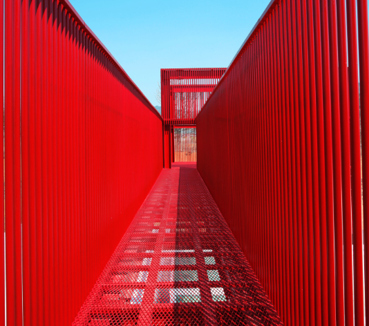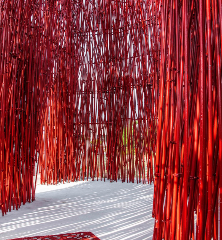 붉은 대나무를 설치미술이자 조각작품으로 최