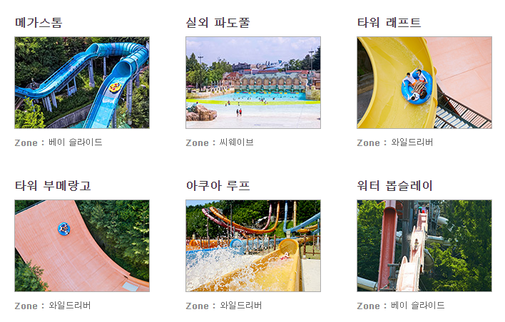 총집합되어 있습니다. 특히 2015년 오픈한 '메가스톰'은 국내 최대 규모를 갖춘 복합형 워터 슬라이드로서