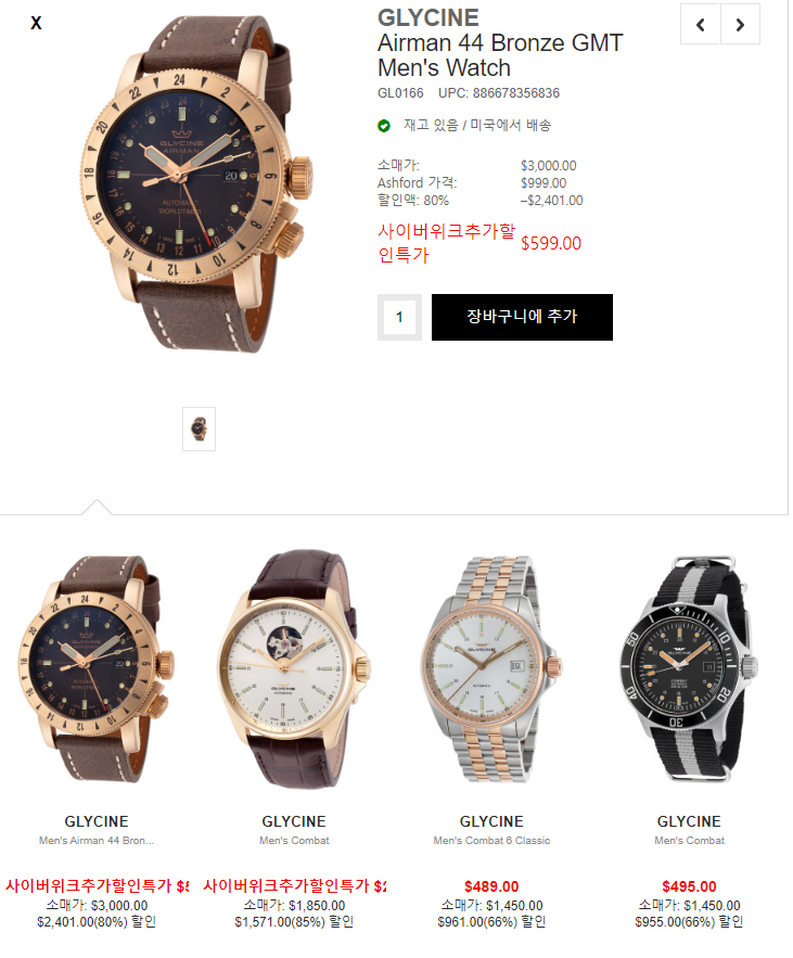 GLYCINE Airman 44 Bronze GMT Men's Watch 는 ashford 해외직구사이트에서 80% 할인된 최저가 599달러에 판매하고 있으며, 한국어 사이트 구매할 수 있어 쉽게 구매하실 수 있으며, ashford 해외배송정책에 따라 500달러 이상 제품은 ups 급송으로 무료로 배송됩니다. 제품은 ashford 사이트에서 GLYCINE 브랜드를 검색하시면 쉽게 찾을 수 있고 다른 제품들도 많이 할인 하고 있습니다.