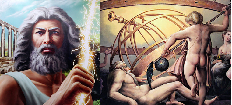대지의 여신 가이아와 하늘의 신 우라노스의 천지창조, 이어진 크로노스의 시대와 제우스의 탄생 그리고 전쟁,