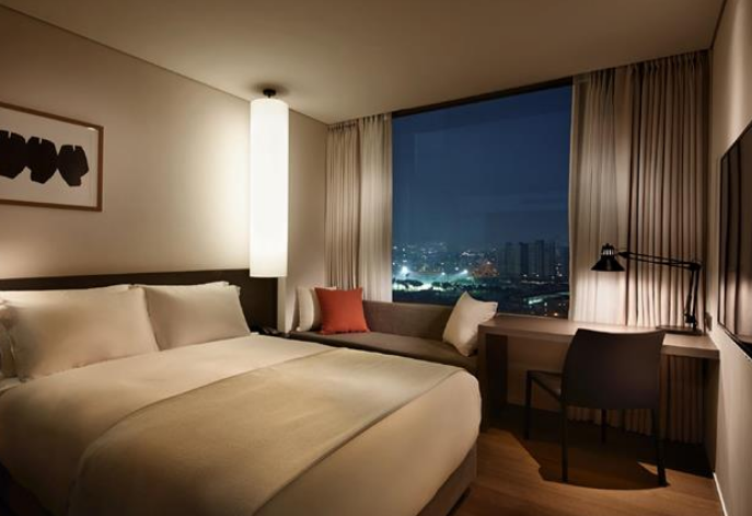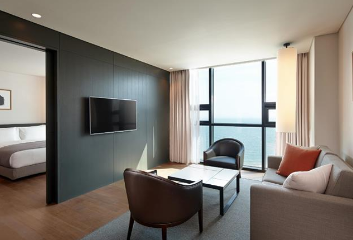 객실에 따라 도시 또는 바다 전망을 감상하실 수 있습니다. 모던한 인테리어가 돋보이는 모든 객실 내에는 40인치 LED TV, 냉장고, 책상 등이 있으며 욕실에는 고급 어메니티와 목욕가운이 구비되어 있습니다.