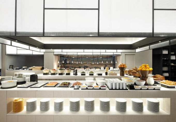 호텔 2층에 위한 레스토랑 카페에서는 조식, 브런치, 중식, 석식 뷔페를 운영하고 있으며
