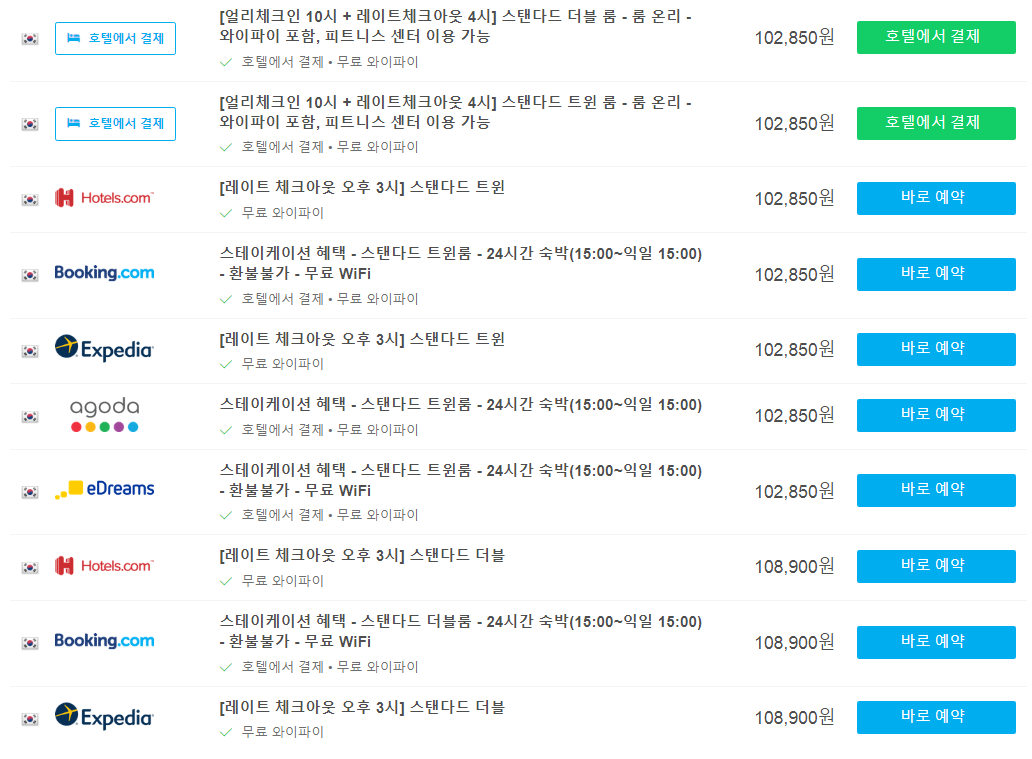 가격 및 호텔옵션을 비교하여 쉽게 최저가를 확인하실 수 있습니다.