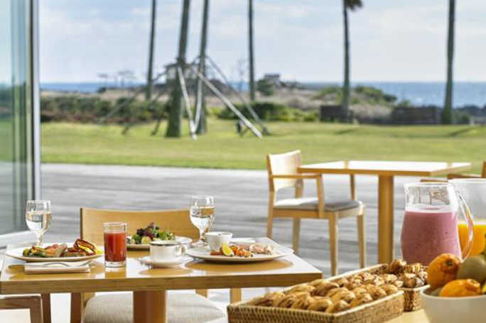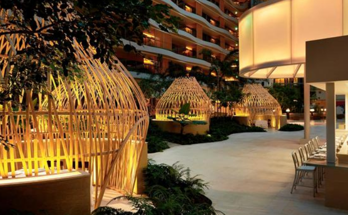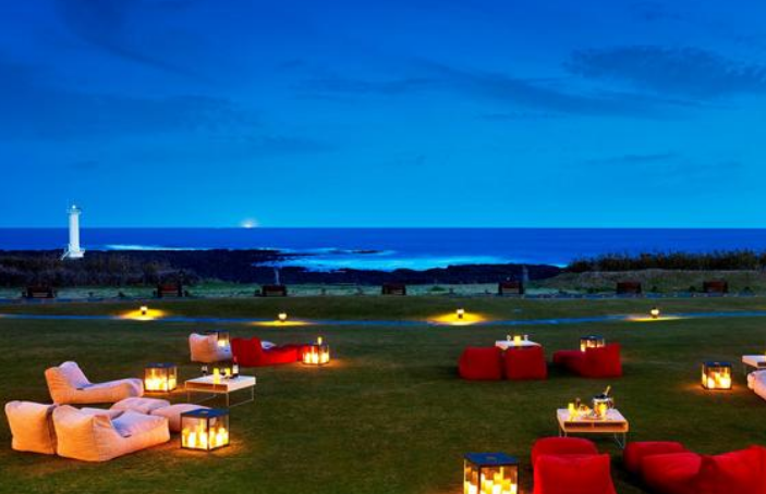 제주여행에 가족과 함께 고급스러운 식자재와 멋진 분위기의 저녁시간을 만끽할 수 있는 롯데호텔의 이국적인 야외정원에서 전세계 음식을 만끽해 보세요 ~ 이국적인 야외정원에