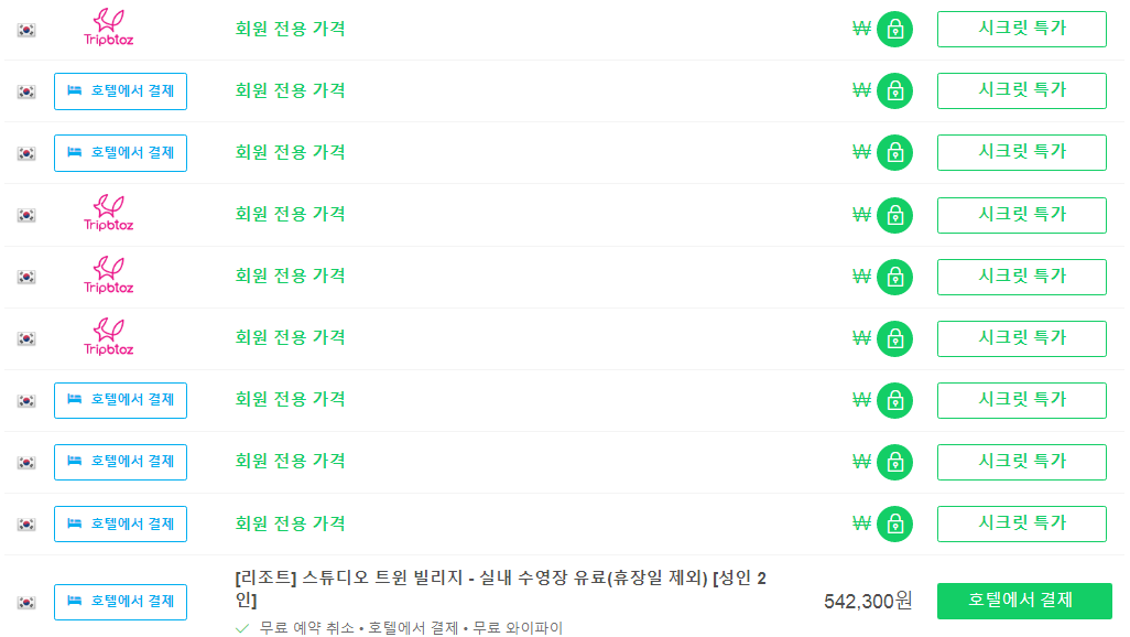 아고다비회원이거나 등급이 낮다면 최저가가 다를 수 있으며,