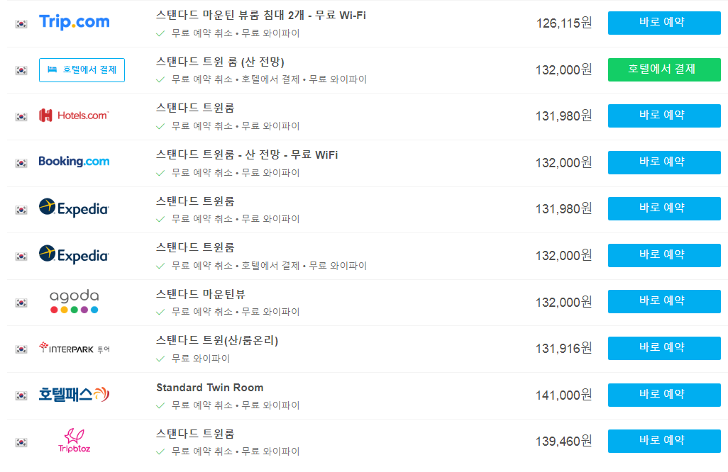 호텔스컴바인에서 가격비교하기