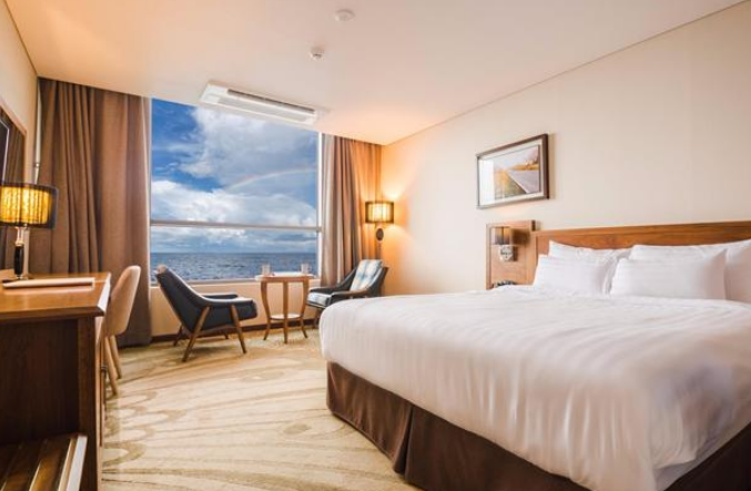 객실 넓고 깨끗하며 좋았습니다. 침구류도 좋았고, 제반 객실 비품들이 좋았습니다. 호텔 후면의 바닷가 산책하기도 좋았습니다. 직원들도 친절하고, 전반적으로 마음에 들었습니다. 음식은 먹질 못하고 아침일찍 나와서 평가를 못하겠네요.