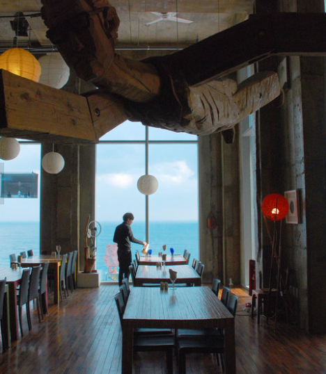 레스토랑, 바다카페가 있는 자연에 기대어 예술을 감상할 수 있는