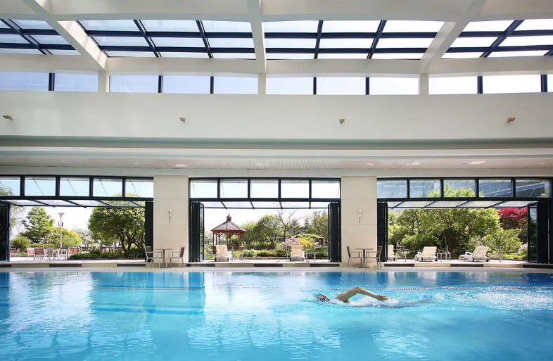 이스트 타워의 25m 실내 수영장과 웨스트 타워의 20m 실내 수영장은 물론, 15m 규모의 어린이 전용 수영장도 구비하고 있습니다. 모든 수영장은 전면 개폐식 유리창을 통해 실내에서도 자연 채광 아래에서 수영을 즐길 수 있으며 야외 가든과 연결되어 보다 편안한 분위기를 선사합니다. 놀이 기구를 갖춘 어린이 전용 수영장과 야외 어린이 놀이터, 조깅 트랙, 피트니스 센터는 모든 가족을 위한 최적의 휴식을 제공합니다.