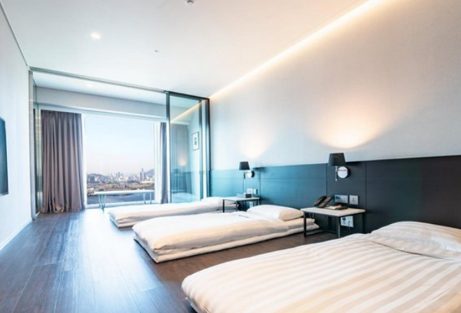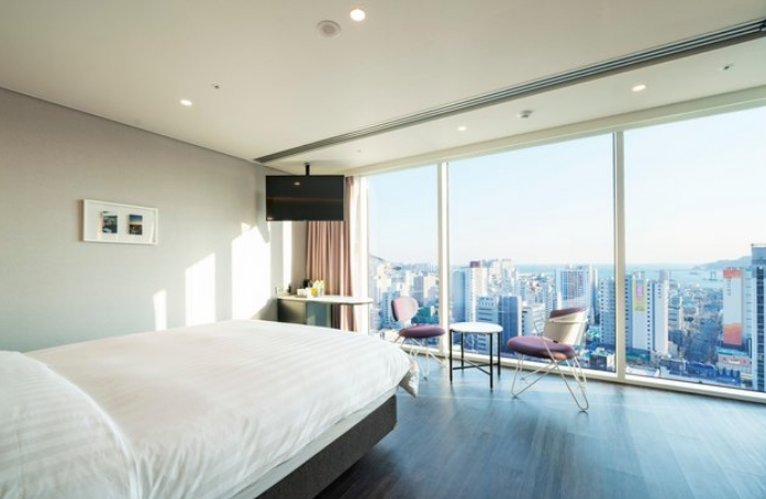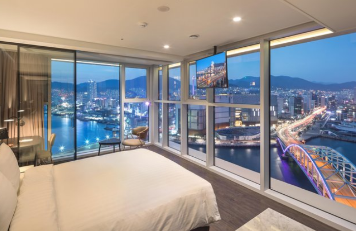 저렴한 가격에 이런 뷰가 보이는 방에서 보낼 수 있어서 좋았고 1층에 있는 편의점을 관리를 안하는지 음식이 아무것도 없어서,,그게 좀 불편했어요 첫날 들어가자마자 냉장고에 남이 먹던 물이 있어서 기분이 좀 상했지만 뷰가 너무너무 좋아서 3박4일동안 호텔 안에서만 있었어요