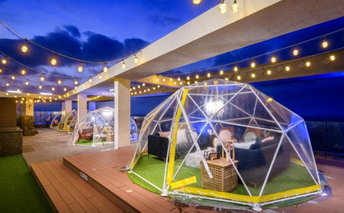제주여행에 가족과 함께 고급스러운 식자재와 멋진 분위기의 저녁시간을 만끽할 수 있는 롯데호텔의 이국적인 야외정원에서 전세계 음식을 만끽해 보세요 ~ 이국적인 야외정원에