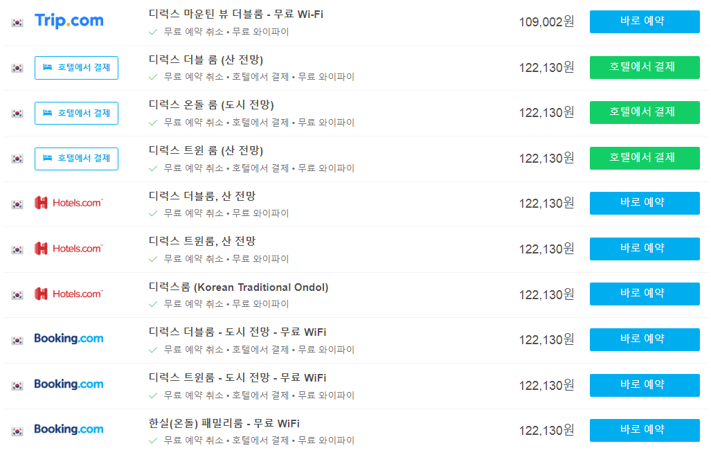 호텔예약사이트들의 가격 및 호텔옵션을 비교하여 쉽게