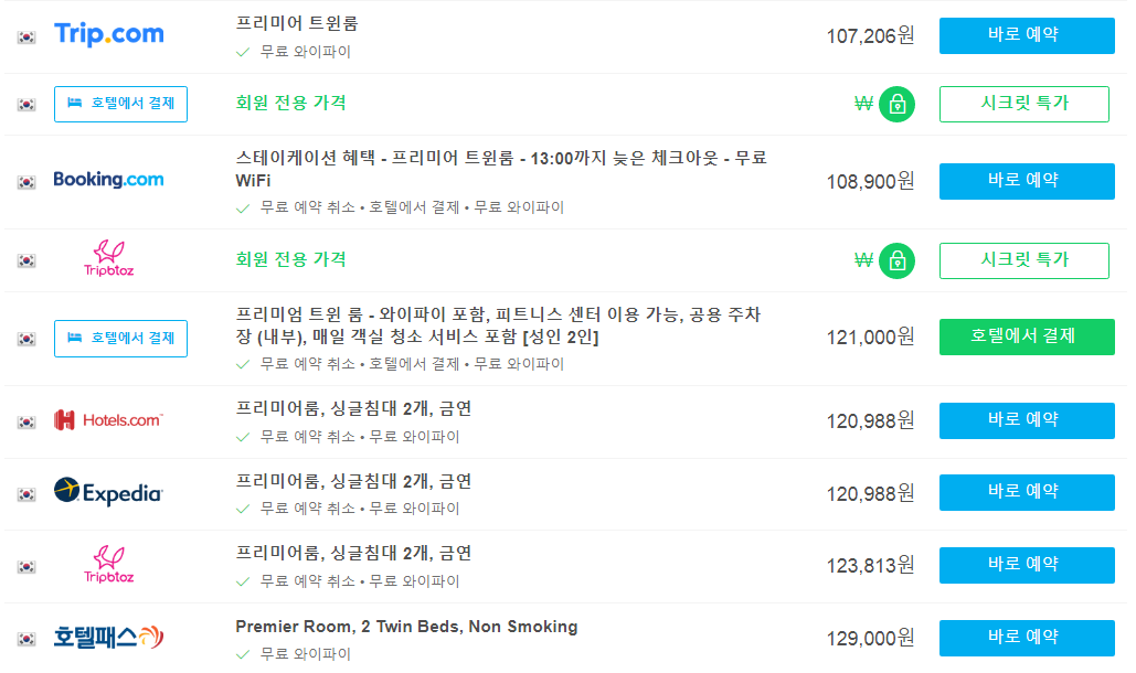 호텔스컴바인에서 가격비교하기