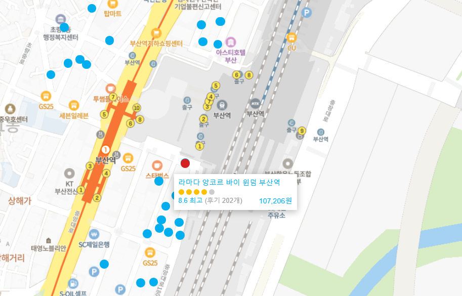 부산역바로 앞.1층에 던킨도넛과스벅도 있어서 편리했어요