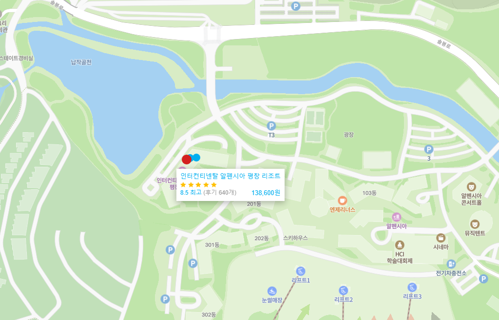 스키장의 북적거림에서는 살짝 벗어났지만 그렇다고 스키장을 이용하는데 전혀 불편함이 없는 곳. 2박3일을 조용하게 잘 쉬다 올 수 있었습니다. 다음에도 또 이 곳을 이용할 것 같아요.
