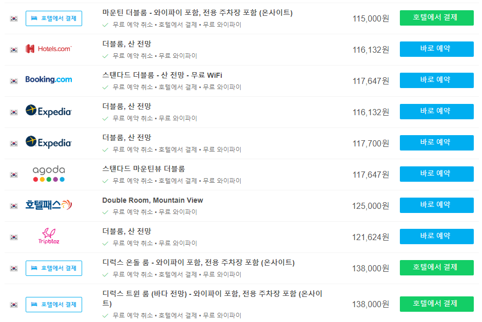 날짜에 따라서도 가격이 다르므로 여행날짜에 맞춰 가격을 검색하시는것이 좋습니다.