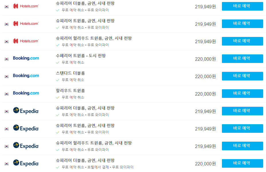 날짜에 따라서도 가격이 다르므로 여행날짜에 맞춰 가격을 검색하시는것이 좋습니다.