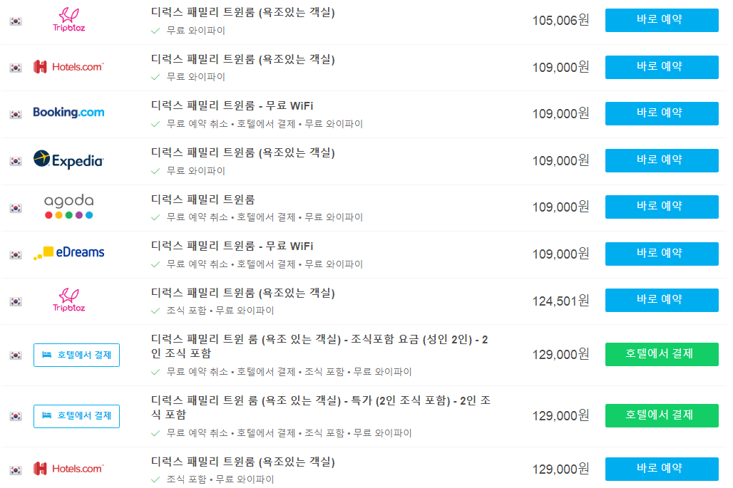날짜에 따라서도 가격이 다르므로 여행날짜에 맞춰 가격을 검색하시는것이 좋습니다.