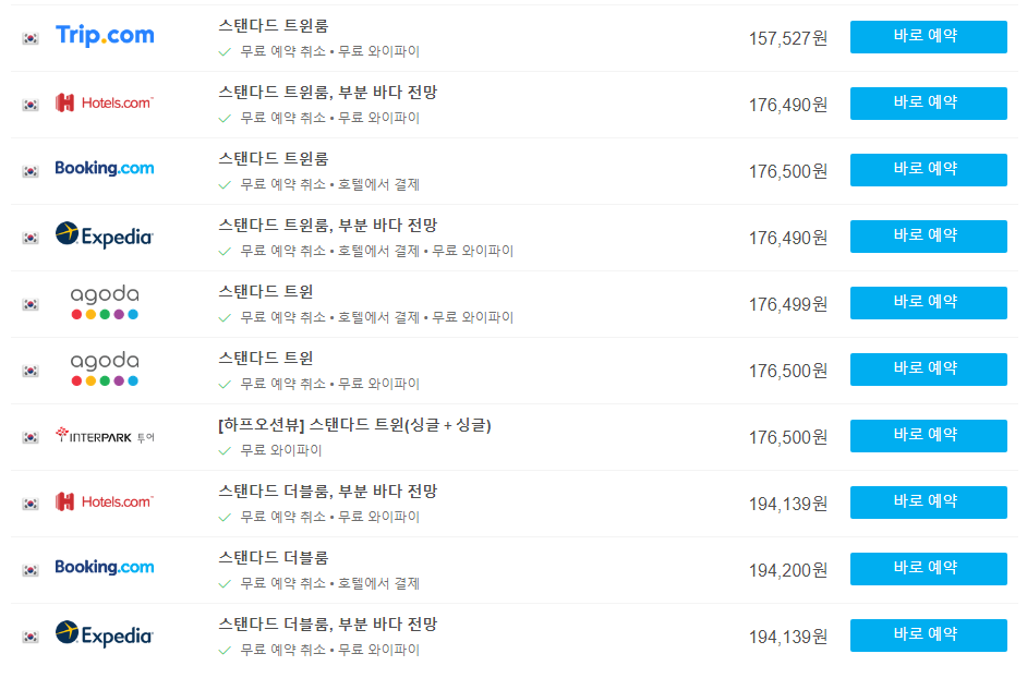 날짜에 따라서도 가격이 다르므로 여행날짜에 맞춰 가격을 검색하시는것이 좋습니다.