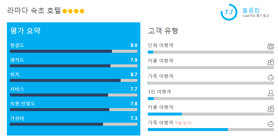전반적으로 청결하고 화장실 깔끔하고 주변편의시설좋음” 가격대비 너무 좋아요. 숙소 고를때 청결과 화장실을 가장 많이 고려하는데 여긴 완벽했어요. 그리고 원래 호텔에 머��