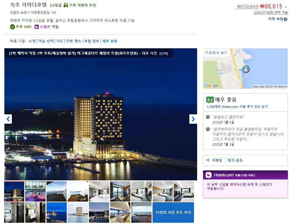 호텔스 컴바인 사이트를 이용하시면 호텔예약사이트들의 가격 및