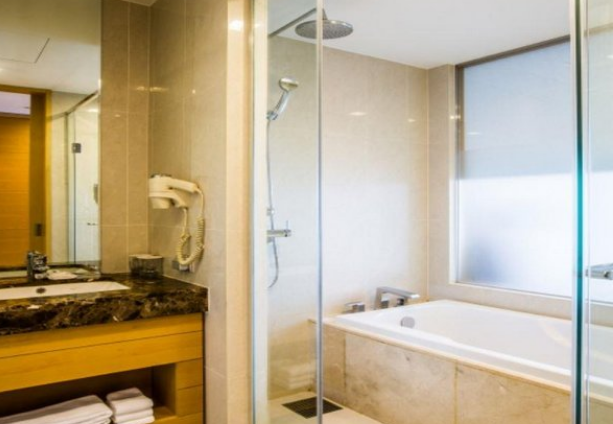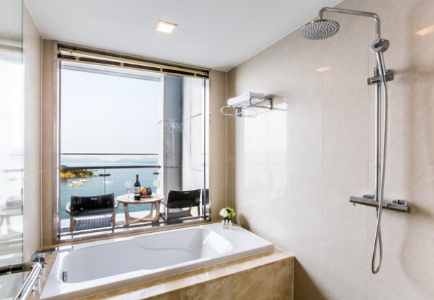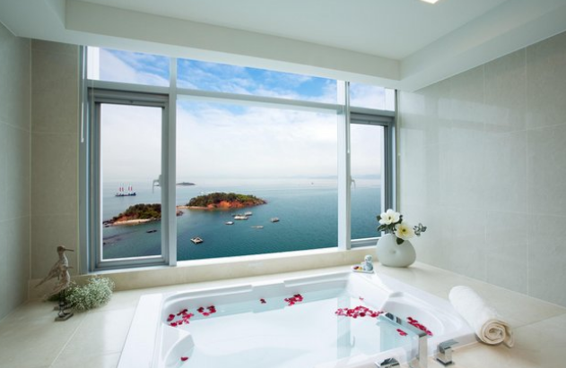 객실 오션뷰가 좋았고 수영장도 좋았습니다. 바람이 많이 불었는데도 물이 따뜻해서 수영하기 무리 없었어요. 배민도 시켜먹을 수 있고요. 로비에서 받아서 올라가야 합니다. 조식도 가성비 좋았어요. 화장실과 샤워실은 조금 작지만 괜찮은 수준이었어요.