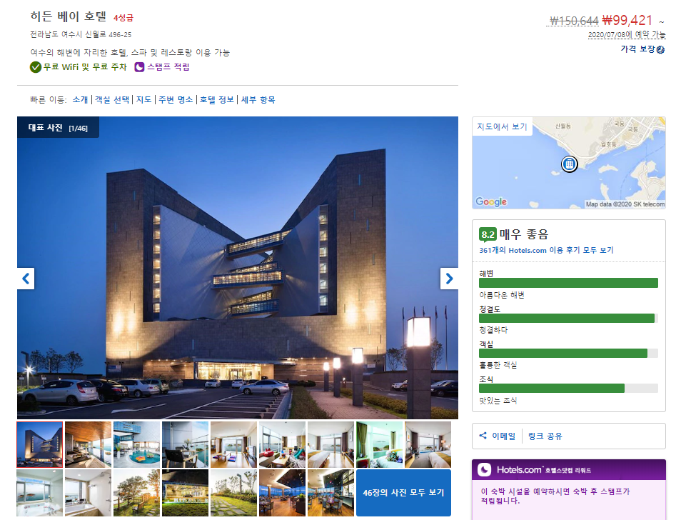 여수 히든베이 호텔 (Hidden Bay Hotel)은 객실타입, 호텔옵션에 따라