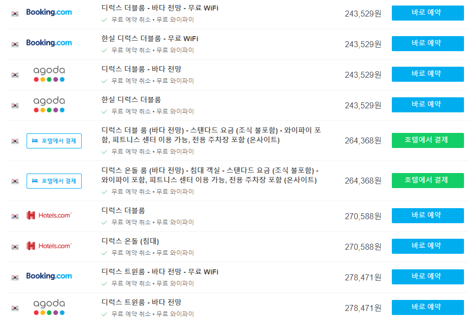 호텔스 컴바인 사이트를 이용하시면 호텔예약사이트들의 가격 및