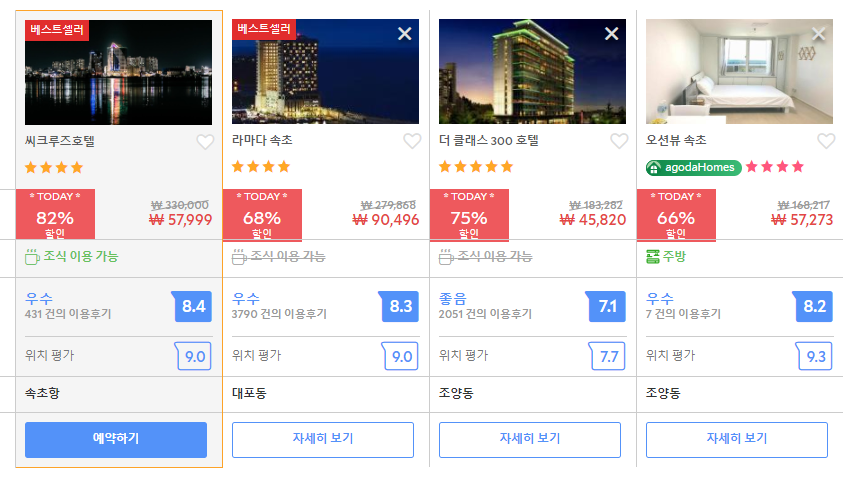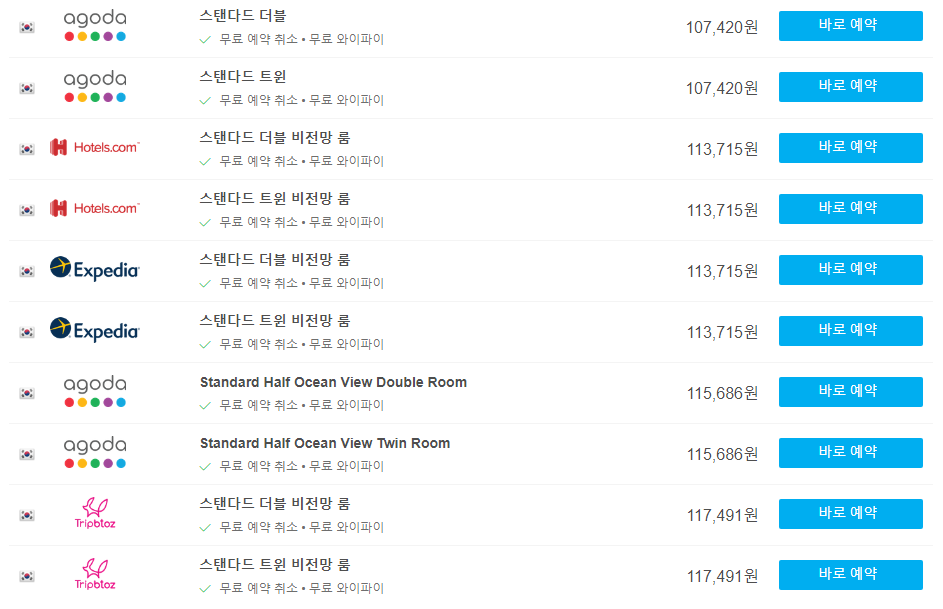 아고다비회원이거나 등급이 낮다면 최저가가 다를 수 있으며,