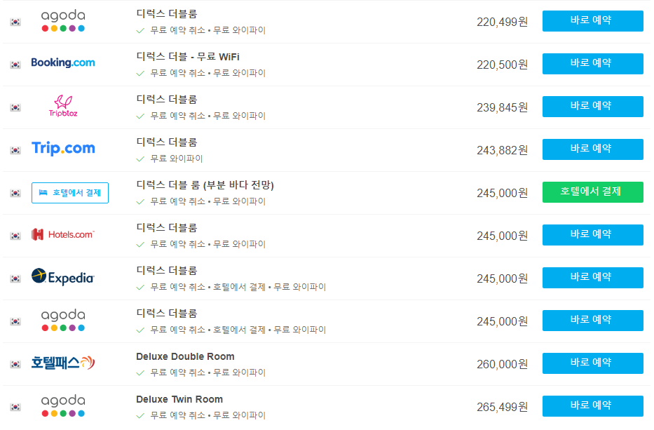 호텔스 컴바인 사이트를 이용하시면 호텔예약사이트들의 가격 및