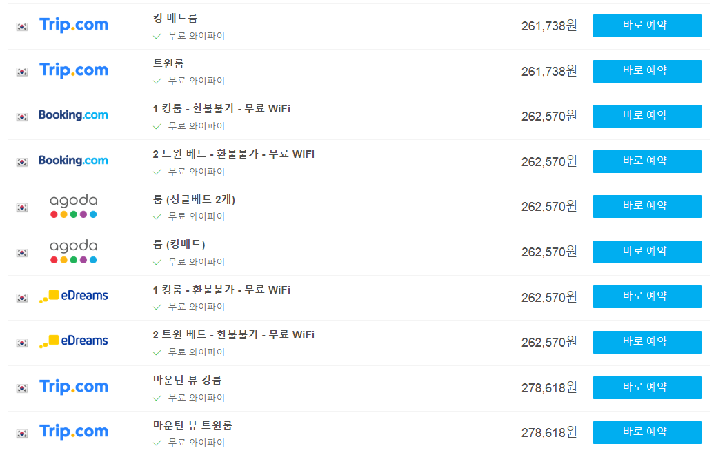 날짜에 따라서도 가격이 다르므로 여행날짜에 맞춰 가격을 검색하시는것이 좋습니다.
