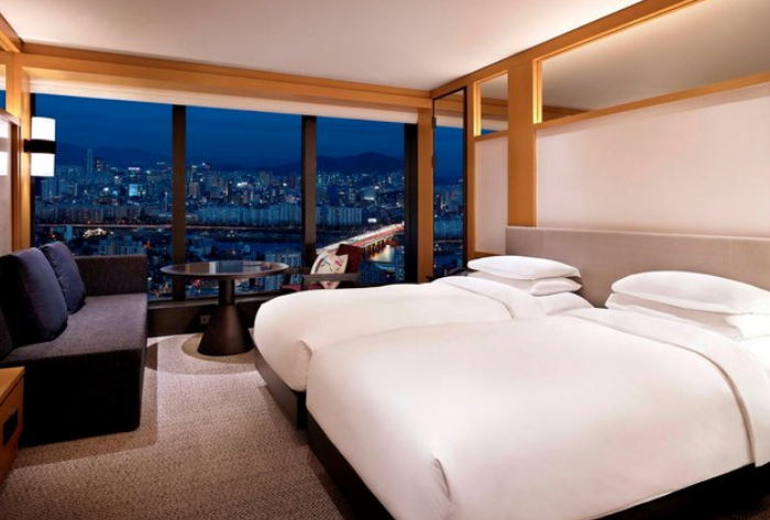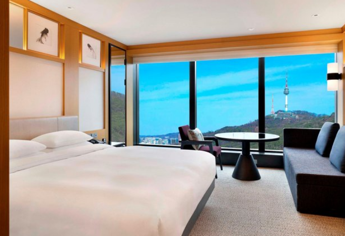 그랜드 하얏트 서울 (Grand Hyatt Seoul)은 스위트룸을 포함하여 전체 615개의 객실이 있습니다. 넓은 통유리창을 통해 남산 또는 도심 전망을 감상할 수 있으며 모든 객실 내에는 무선 인터넷을 무료로 사용하실 수 있습니다. 객실 내에는 DVD 플레이어, 미니바, 개인 금고 등이 있습니다. 모던 스시 바 카우리, 그릴요리 전문 스테이크 하우스, 이자카야 펍 텐카이, 유리피언 비스트로 제이제이 델리 등을 포함한 전체 12개의 레스토랑과 바가 갖춰져 있어 다이닝 선택의 폭이 다양합니다.