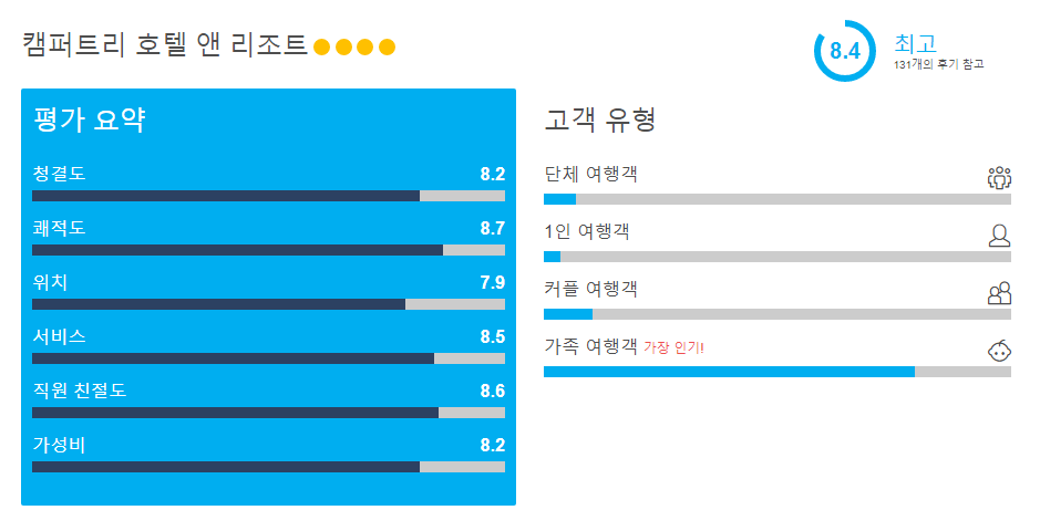 캠퍼트리 호텔 앤 리조트가 높은 건물이 아니라서 그런지 모르고 지나면 모르는 곳에 넓고 한적한 공간에 아담한 건물의 리조트 및 호텔이 자리 잡고 있더군요 공기도 좋고 숙소 내부는 깨끗하고 편안했어요 기회가 되면 다시 찾고 싶은 곳입니다~ 아쉬운 점은 코로나 19 관계로 될 수 있으면 바깥 외출 없이 지내다 온 것이 아쉬웠슴니다.