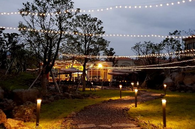 제주여행에 가족과 함께 고급스러운 식자재와 멋진 분위기의 저녁시간을 만끽할 수 있는 롯데호텔의 이국적인 야외정원에서 전세계 음식을 만끽해 보세요 ~ 이국적인 야외정원에