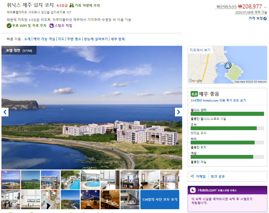 휘닉스 제주 섭지코지 (Phoenix Seopjikoji)는 객실타입, 호텔옵션에 따라 현재 10만원대부터 다양하게 확인하실 수 있습니다. 호텔스 컴바인 사이트를 이용하시면 호텔예약사이트들의 가격 및 호텔옵션을 비교하여 쉽게 최저가를 확인하실 수 있습니다.