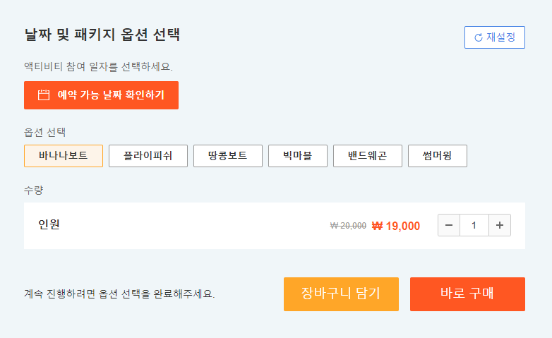 액티비티는 계절 및 날씨에 따라 일몰 전까지 이용이 가능합니다.