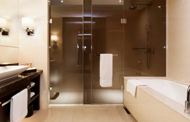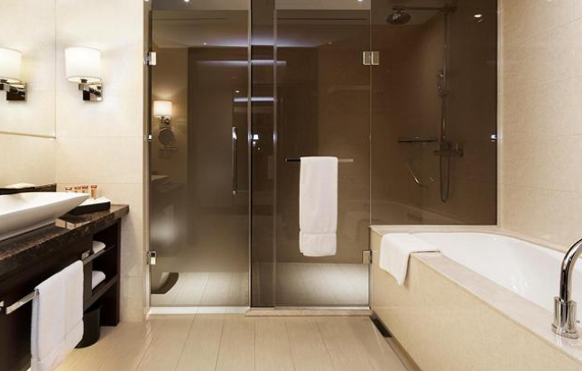 인천공항을 이용할 때 비행시간이 너무 이르면 쉐란톤에서 하루 묶고 담날 떠나는라 종종 이용하는데 리무진 버스 타기에도 좋고 욕실이 넓고 공간이 분리되어 있어 좋다. 샤워부스 욕조 다 있고 굳!